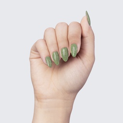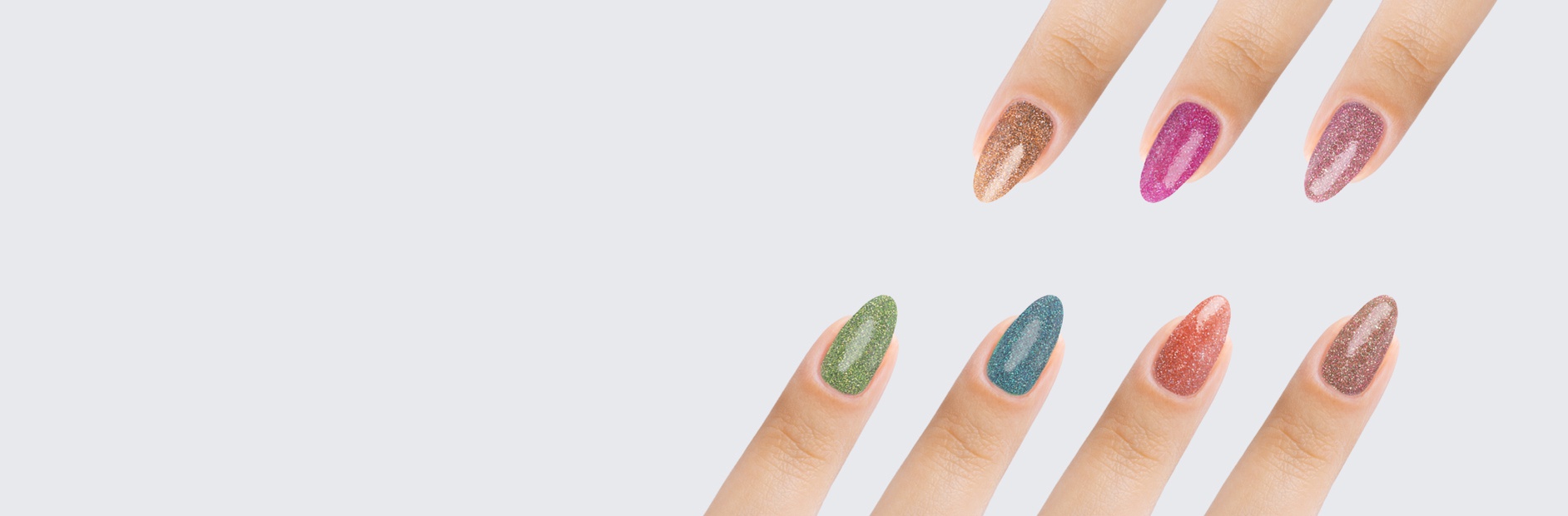 Using the scoop provided, gently pour the shimmer onto the uncured polish.